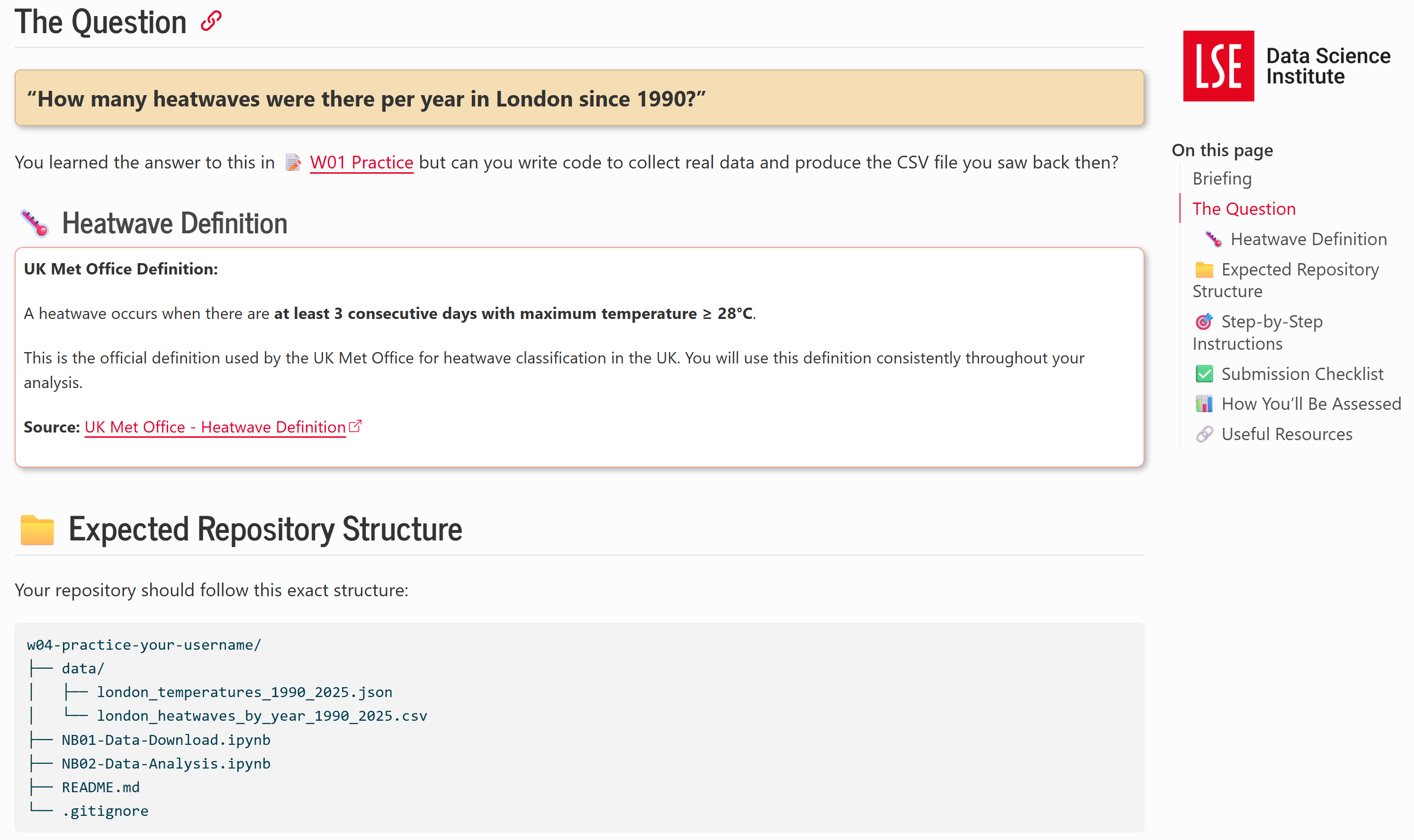 "H1: \ud83d\udcca W04 Practice: London Heatwave Analysis (1990-2025)",